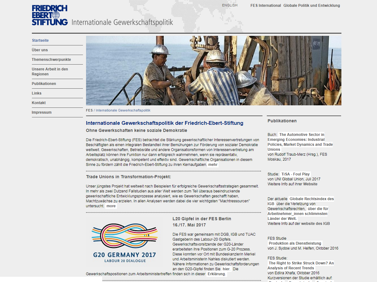 The representation of worker's interests can only function successfully if it is representative, democratic, independent, competent and effective. The Friedrich-Ebert-Stiftung strengthens trade unions and other forms of organization all over the world.