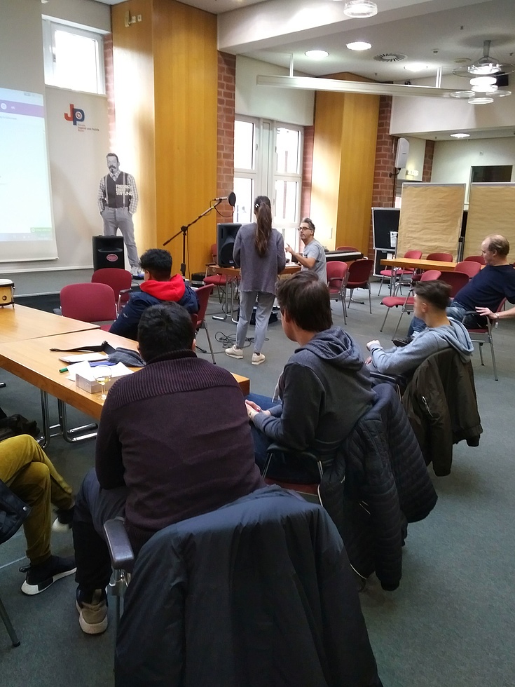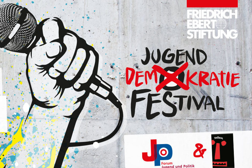 An zwei Workshoptagen in der Friedrich-Ebert-Stiftung Bonn entstanden nach einem inhaltlichen Einstieg mit politischen Gästen, Zeitzeugen, Kurzplanspiel, Online-Quiz u.v.m. unter professioneller Anleitung von Musikern, Filmemacher_innen und Poetry-Slam-Profis in Filmen, Songs und Texten Antworten auf aktuelle Herausforderungen für Demokratie.