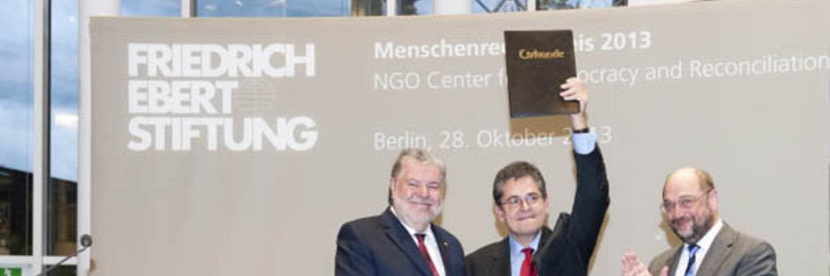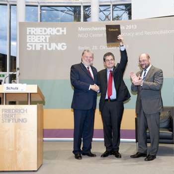 Der Menschenrechtspreis wurde am 28. Oktober 2013 in der Friedrich-Ebert-Stiftung Berlin durch Kurt Beck an CDRSEE verliehen. Die Laudatio hielt Martin Schulz, Präsident des Europäischen Parlaments.
