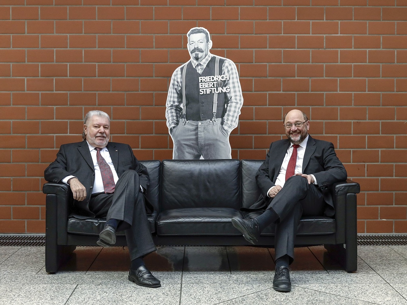 Martin Schulz steht in einer Reihe mit den sieben Vorstandsvorsitzenden der FES, seit sie nach dem 2. Weltkrieg wiedergegründet wurde.