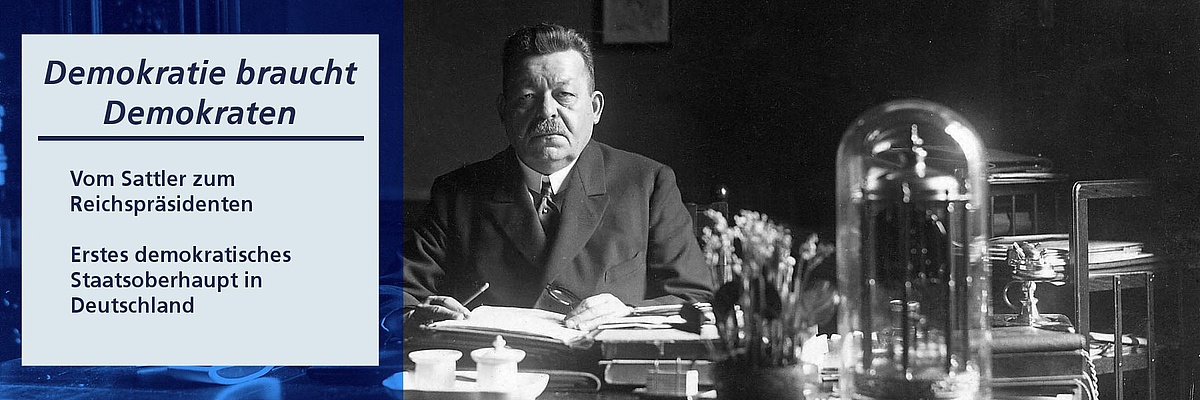 Der Sozialdemokrat Friedrich Ebert (1871–1925) zählt zu den bedeutendsten Persönlichkeiten der deutschen Demokratiegeschichte – als Mitglied der Revolutionsregierung nach dem Ersten Weltkrieg und als erster gewählter Reichspräsident der ersten demokratischen Republik auf deutschem Boden.