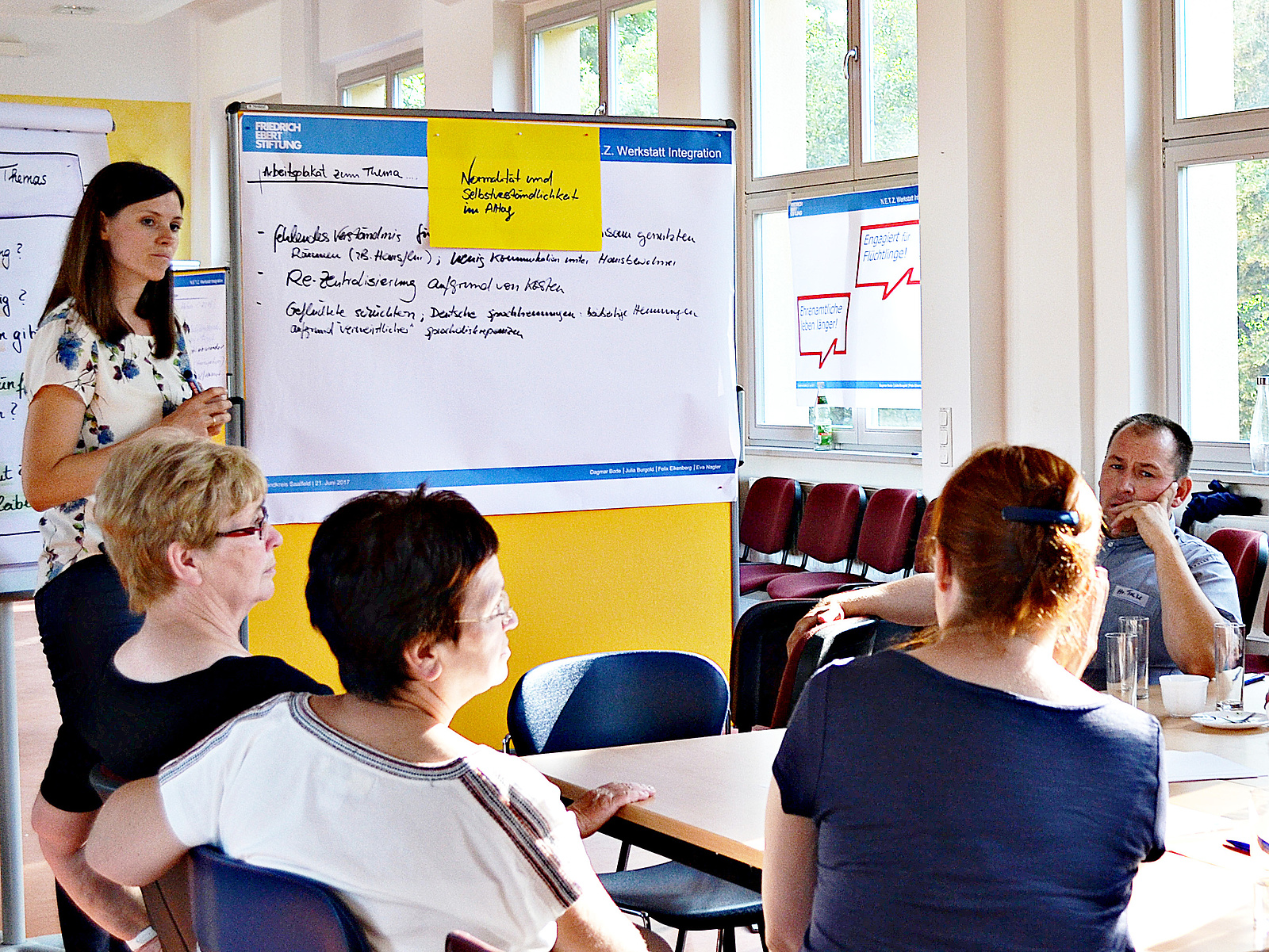Im Fokusprojekt „Arbeit mit Geflüchteten und Helfer_innen“ bietet die Friedrich-Ebert-Stiftung dafür das Format „NETZ Werkstatt für Integration“ an, das den Austausch zwischen den vor Ort in der Flüchtlingshilfe tätigen Akteur_innen ermöglicht.