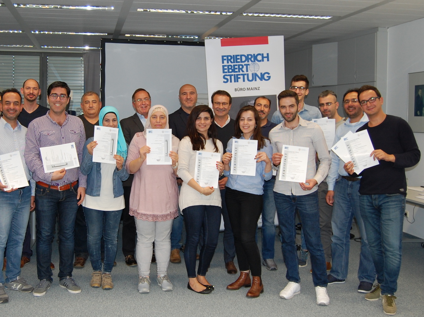 Daher führen seit Ende 2015 arabisch- und persischsprachige Trainer_innen im Auftrag der Friedrich-Ebert-Stiftung Seminare zur demokratischen Bildung mit geflüchteten Menschen in mehreren Bundesländern durch. Lesen Sie mehr dazu hier oder schauen Sie sich unseren kurzen Trailer an.